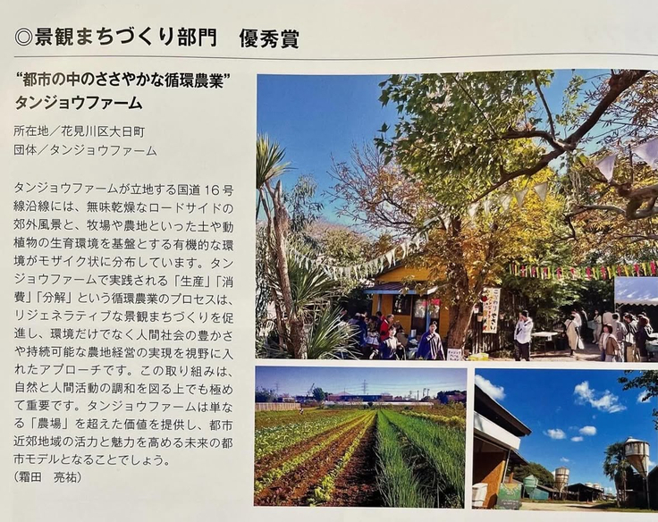 ★【千葉市都市文化賞フォーラム2024】におきまして、「タンジョウファーム」は「景観まちづくり部門」にて「都市の中のささやかな循環農業」と言うタイトルで優秀賞を受賞させていただきました。