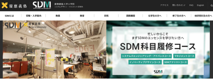 2011年4月からは、現代社会に存在する大規模で複雑な問題を解決に導くための教育と研究を目的に設立された慶應義塾大学大学院システムデザイン・マネジメント研究科の修士課程に進学します。大学院ではシステム工学をはじめシステム思考、デザイン思考、プロジェクト・マネジメントについてプロジェクト実践型で学ぶ経験をすることができました。