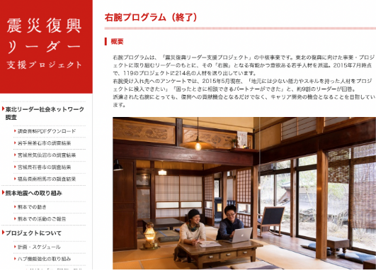 大学院に通いながら、同時並行で地元でのボランティア活動や、NPO法人ETIC.の右腕派遣制度を通じて派遣された福島大学災害復興研究所において復興支援活動に従事しました。