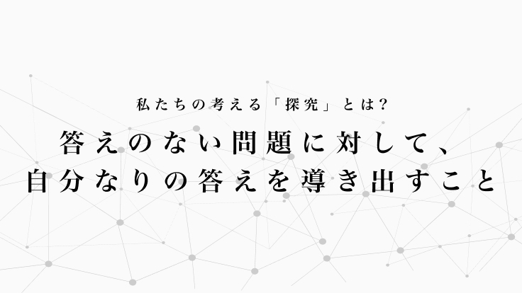 この「答えのない問題に対して、自分なりの答えを導き出すこと」を「探究」と私たちは定義しています。
