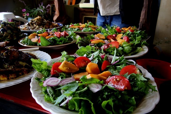 作業の後は、NO S.E.N.S.Eの鈴木健太郎、太田翔くんに作ってもらったサラダ、スパイスの効いたお魚とお肉料理5品、島のレモンを使ったクラフトコーラなどの飲み物で交流会。