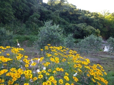 今年の畑は住宅跡地利用なのですが、オリーブ堆肥を混ぜて移植したオリーブの木はひと月余が過ぎて、とても元気に育って小さな実もつけています。