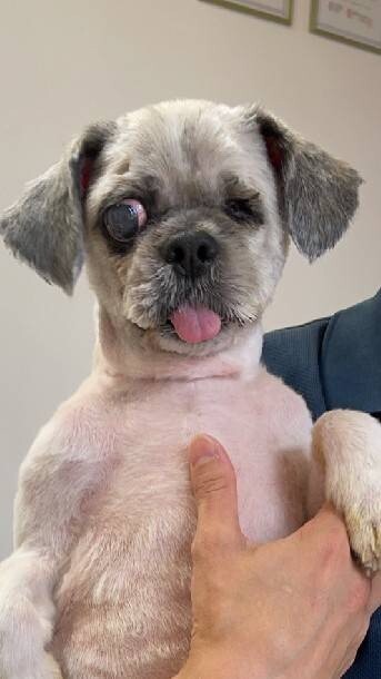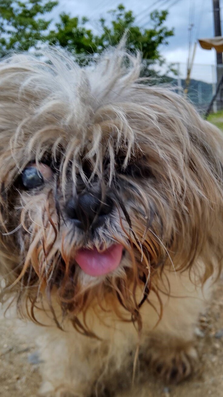 飼い主に捨てられ、毛はガチガチにかたまり、両目ともに失明、