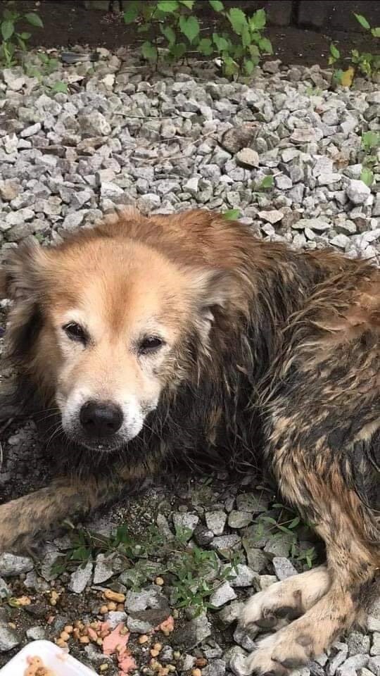 飼い主に捨てられた挙句、溝に落ちて動けなくなり