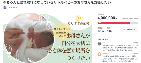 いただいた応援メッセージのひとつひとつに、勇気をいただくとともに、必ずリトルベビーとお母さんが癒やされる、駆け込み寺になれる場所をつくるぞ!と改めて気持ちを引き締めています。