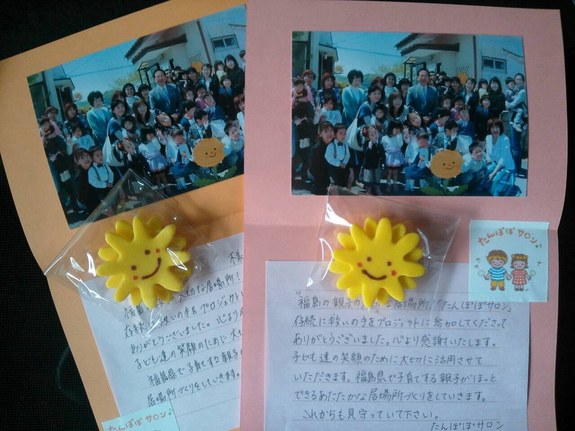 サンクスレタ-と手作りのたんぽぽバッヂをお送り致しました。