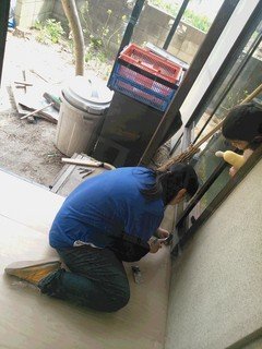 縁側部分の木が腐っていたので、ママ達が新しい木を打ちつけてくれました。