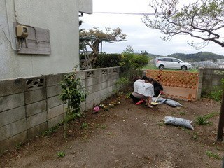 ☆地震の影響で傾いているブロック塀に、子供たちが近寄らないように・・・