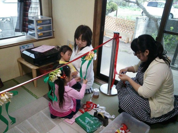 (テ-プカット作成中です。お子さんもお手伝い!)