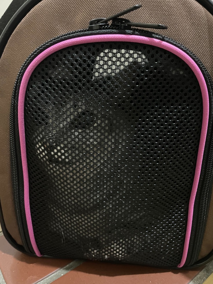 今度は「ねこてまり」の前にキャリーバッグに入れられ、
