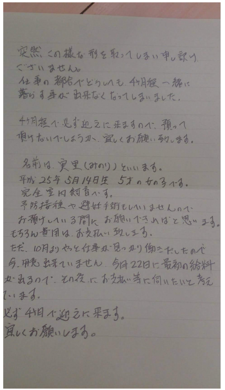 飼い主の事情で2度も行き場を失うという出来事がありました。