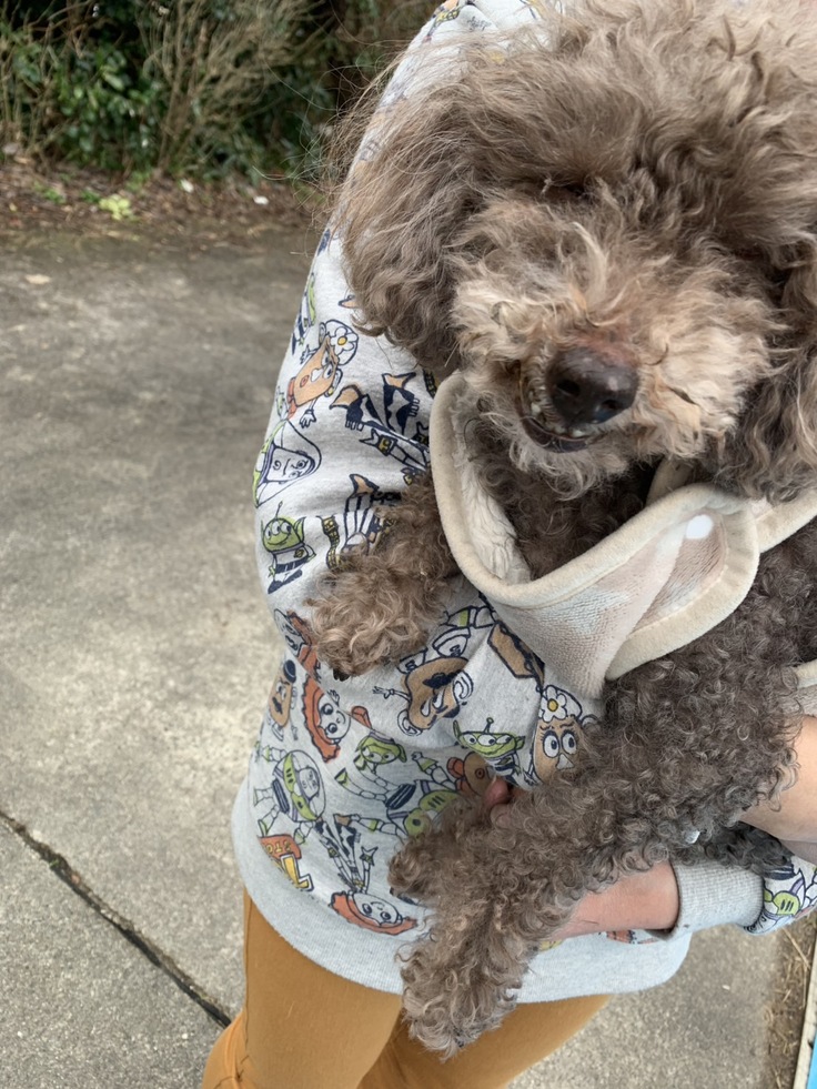 愛犬を抱えて必死に逃げたという、若い女性とそのわんちゃんに出会いました。