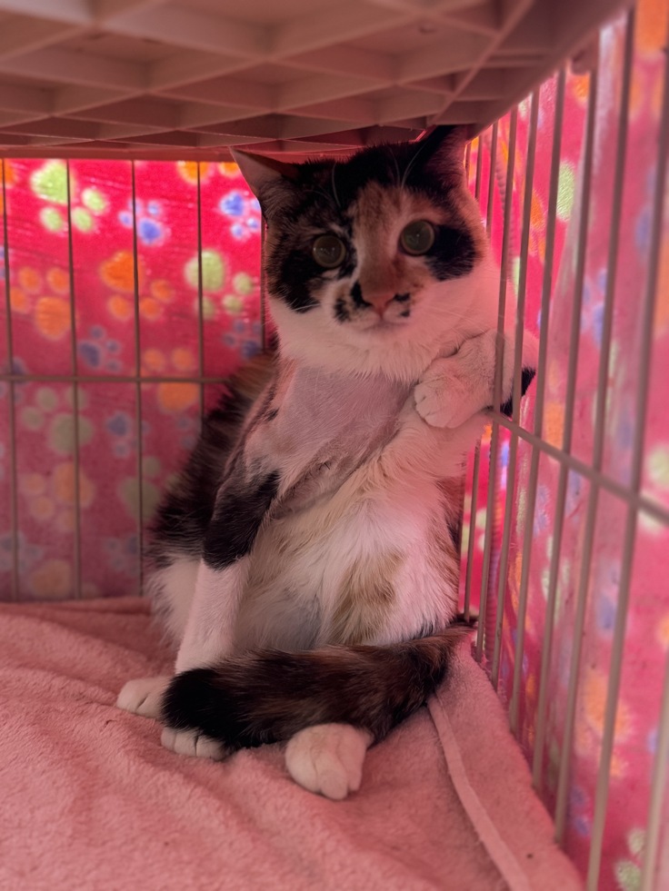 写真はクラファン対応中に保護した骨折で前足が少し不自由なまゆちゃん
