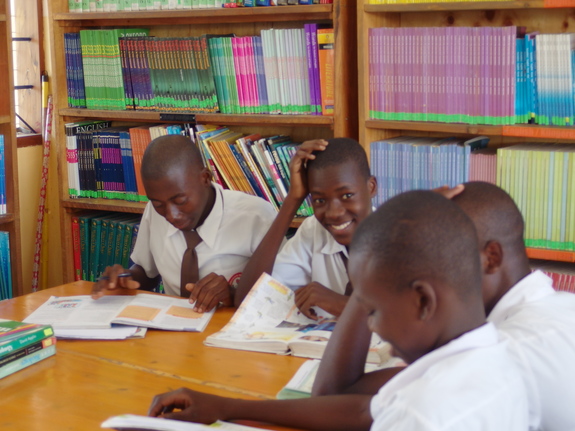 (図書館で勉強中の生徒たち。良い笑顔でカメラ目線をくれました!)