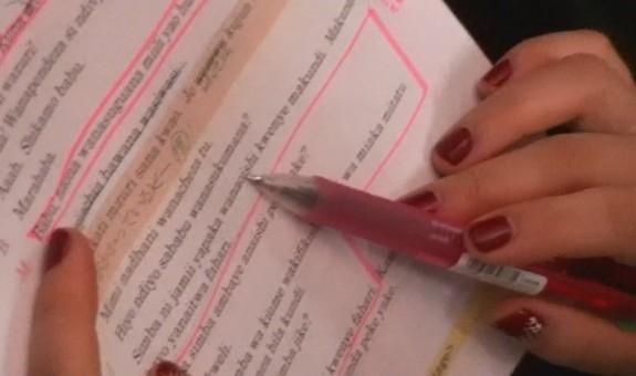 スワヒリ語脚本担当のチャンスから熱い指示が飛びます。