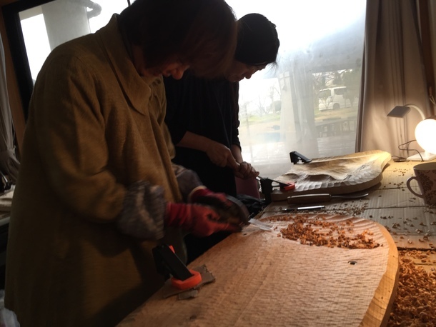 私は昨年もこのワークショップに参加し、ヒーリングライアーを作ったのですが、それは個人の活動のために使っているので、今回は自分だけの活動にとどまらず、多くの方にライアーを知って、使ってほしいという思いでレンタル用のライアーを制作しに再度の参加を決めました。