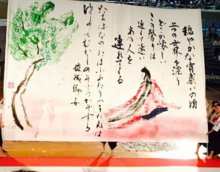 僕の夢のひとつが、手漉きの紙で「書道パフォーマンス甲子園」を行うことです。洋紙と和紙では、墨の入りかたが違うため、手漉き和紙を使用することによって、書道パフォーマンスの表現をより広げる事ができると考えています。