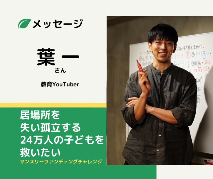 本日は登録者数188万人「とある男が授業をしてみた」で著名な教育YouTuber、葉一さんからメッセージをいただきました。