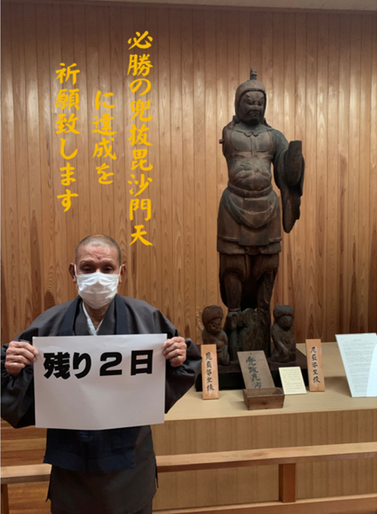 残り2日、現在95%必勝の兜抜毘沙門天に達成を祈願致します。