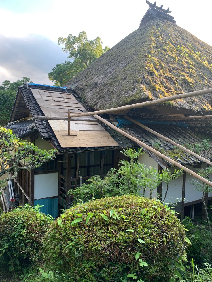 茅葺屋根の葺き替えが始まりました。今日から9月中旬の間二面の葺き替えを行います。皆様の温かいお気持ちで成功したクラウドファンディングで達身寺の歴史ある屋根を未来へ繋ぐことが出来ます。心から感謝を申し上げます。