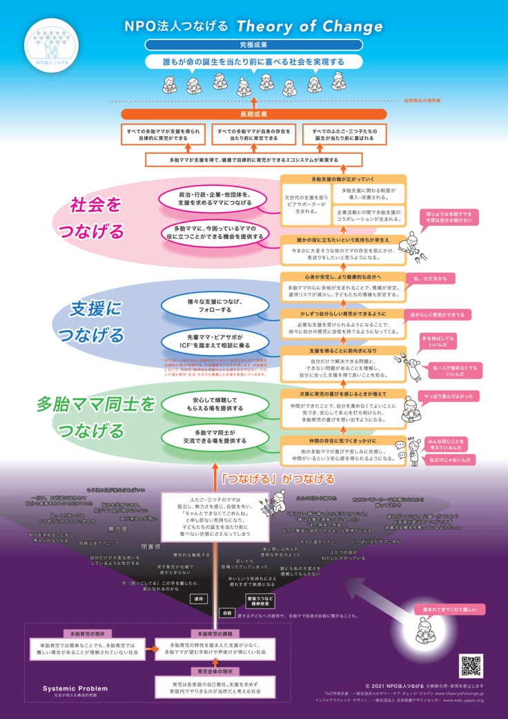 私たちNPO法人つなげるは、「誰もが命の誕生を当たり前に喜べる社会の実現」を目指して活動をしています。いつの間にか孤立し、無力感に襲われ、厳しい状態におかれてしまった多胎ママが、他のママとつながり、支援者とつながり、社会とつながることによって、自立した育児ができるようになること、そしてそうしたママが今度は自ら新しい多胎ママを支援するような循環する社会 (エコシステム) をつくっていきます。