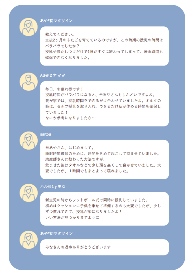 「コロナから双子を守れる気がしない」無邪気に遊び、あちこち動き回って触ったり舐めちゃったりする双子を連れてのコロナ禍の外出は、本当に恐ろしくて出来ませんでした。多胎育児は外出が容易では無く、コミュニティに参加する事も難しい、更にコロナ禍でより一層孤独な育児となっています。オンラインで繋がれるこのプロジェクトは親子の生命を守るものだと思います。