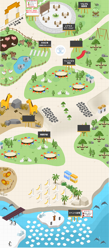 バーチャルオフィスツール oViceを活用して、24時間オープンしているオンライン交流ひろば「ふたごのひろば@大阪」を運営します。大阪府下にお住いの多胎児ママパパ・養育者の方は誰でも入室可能です。