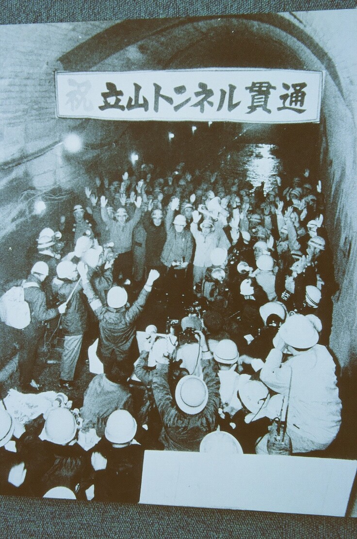 大観峰を結ぶ立山トンネル。完成に町中が沸いた。)