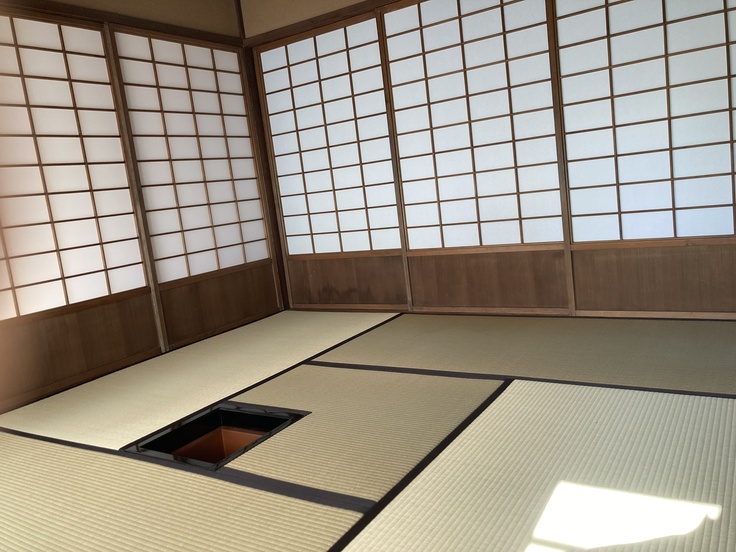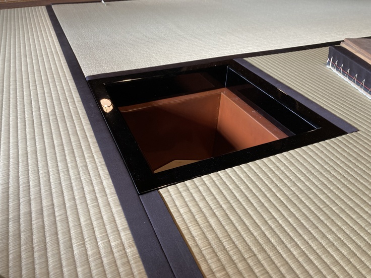 高さが揃った炉縁、隙間なく調整してもらった畳縁