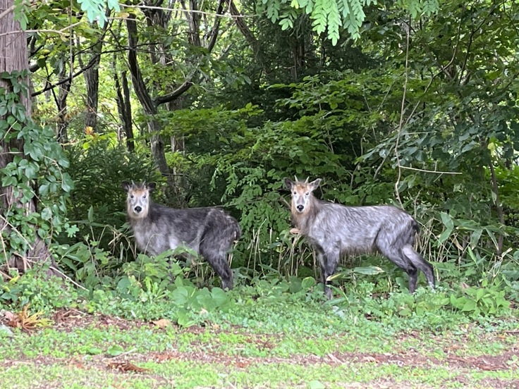 特にここ最近はニホンカモシカの親子が連日遊びに来ています。彼らはりんごの葉や芽を食べてしまうのですが、不思議と果実には全く手を付けません。
