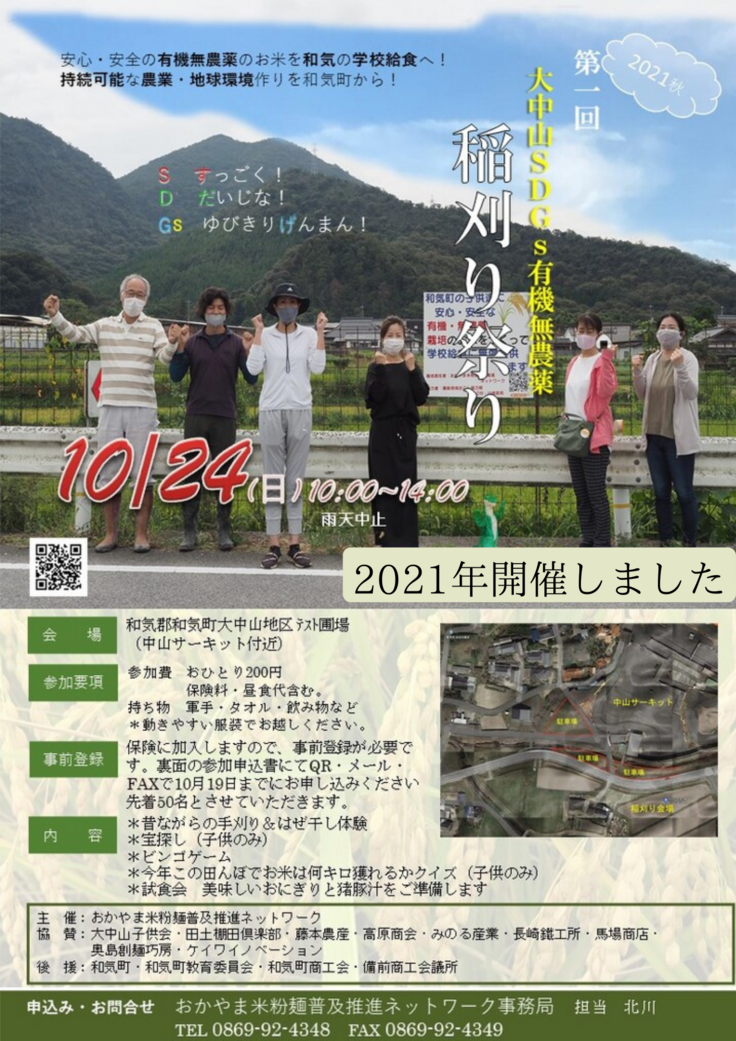 前回の稲刈り祭りでは、和気町をはじめ、たくさんの地元の企業、団体様に御協力・御支援いただきました。