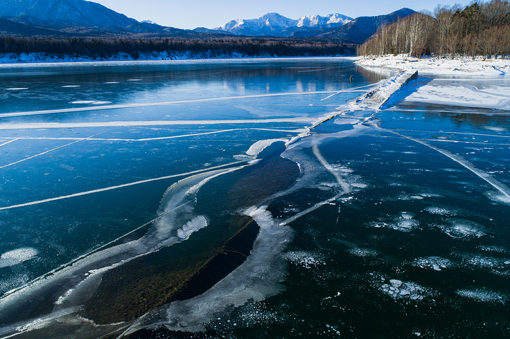 橋が立つのは、冬になると最低気温が氷点下20℃を下回る厳寒の土地。湖に張る氷の厚さは60センチを超えます。