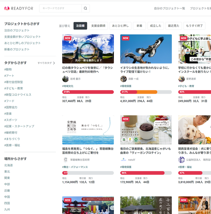 プロジェクト開始からまだ間もない状況ですが、多くのご支援をいただいているおかげでREADYFORの「注目のプロジェクト」に本プロジェクトが掲載されています。