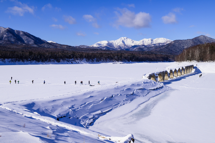 期間中は糠平湖の記録的な低水位がつづきました。9月時点の水位は前年同時期と比べて15メートルほど低く、紅葉時期や初雪、結氷と季節が進んでもその傾向は変わりませんでした。