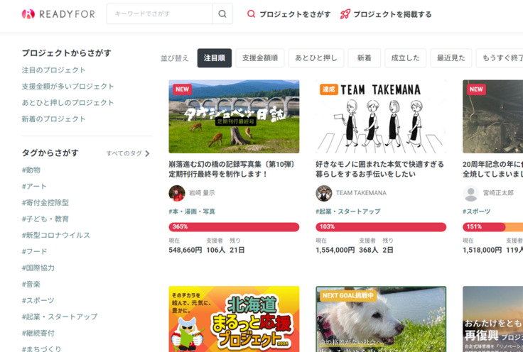 開始初日からいただいたたくさんのお力添えのおかげで、現在READYFOR全体の「注目のプロジェクト」筆頭に上がっています。