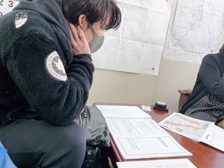 担当者様がとても親切で優しい不動産屋さんで安心。長いお付き合いさせていただきます。それなのに、内心緊張してドキドキ顔の塚本代表。
