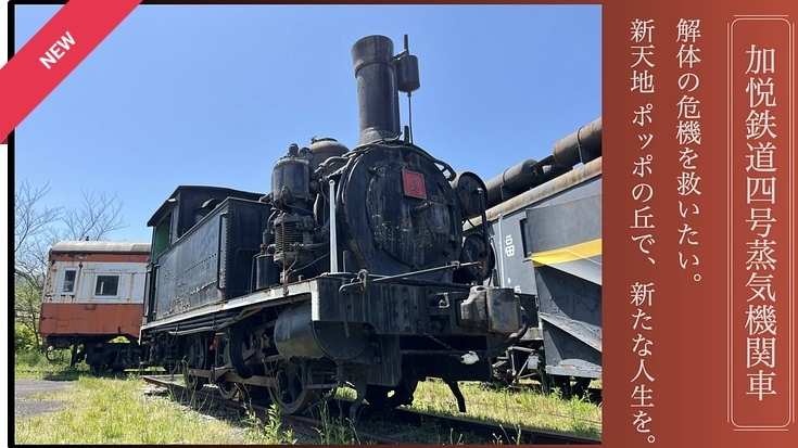 この度、31両目となる元加悦鉄道の4号蒸気機関車をポッポの丘に移転保存するプロジェクトが、「加悦鉄道4号機関車保存会」により始まりました。