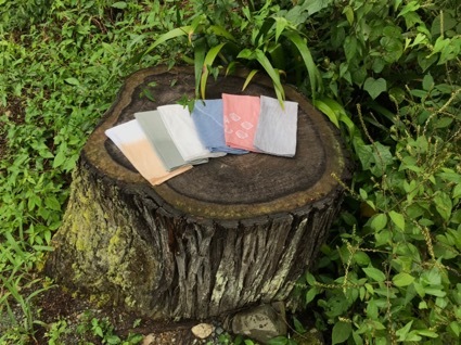 たけだやは、竹田の人も、竹田外の人も訪れる場所です。そこに染色によって表現した竹田の色6色を展示します。展示に合わせ、ハンカチを商品としておきます。