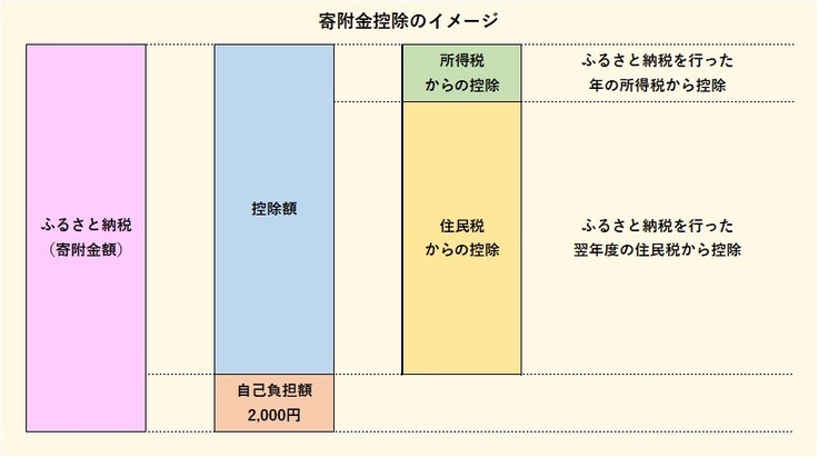 ▶︎「確定申告」又は「ワンストップ特例申請」を行うことで、寄附額から2,000円を除いた金額が所得税・個人住民税から控除されます。