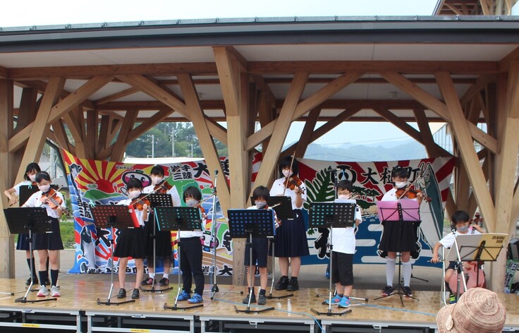 個人で学ぶ習い事とは異なり、子どもたちは年齢や違いを超えて交流する機会を得ながら、音楽を通して誰とでもハーモニーを奏でコミュニケーションができることも学びます。子どもたちは日々の練習の成果を地域の敬老会やこども音楽祭、海外のユース・オーケストラや世界的なアーティストとの共演といった形で、公の場で披露してきました。音楽を通して自己を表現し、仲間と連帯意識を深め、また受け手ともつながるという経験は、子どもたちにとってかけがえのないコミュニティ体験です。