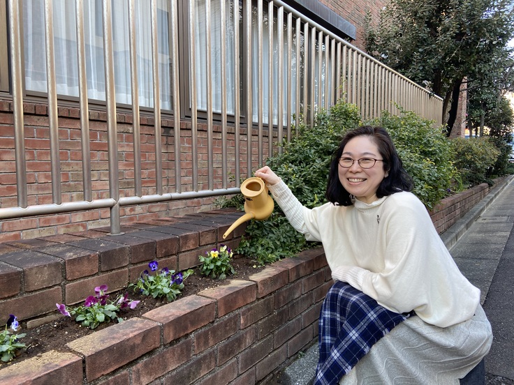 当館では、毎朝スタッフが交代で掃除しているのですが、彼女はお当番の日以外でも、ゴミが落ちていたらさっと掃除機をかけたり、花壇の花をさりげなくホールに飾ったり……。