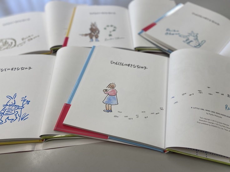 今回のクラウドファンディングのコースのひとつ「大社玲子さん直筆イラスト&サイン入り本+クラウドファンディング限定お話会」のために、大社玲子さんが『なぞなぞのすきな女の子』と『じゃんけんのすきな女の子』のサイン本を送ってくださいました!