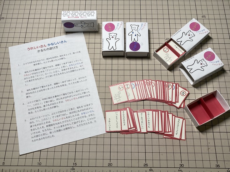 その中の1つ「うれしいさんかなしいさんかるた」製作の様子をご覧ください。絵本『うれしいさんかなしいさん』のミニミニかるたが入った、かわいいマッチ箱。