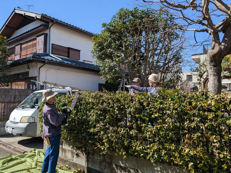 かつら文庫では例年、おひな様公開に先駆けて、庭の剪定作業をお願いしています。