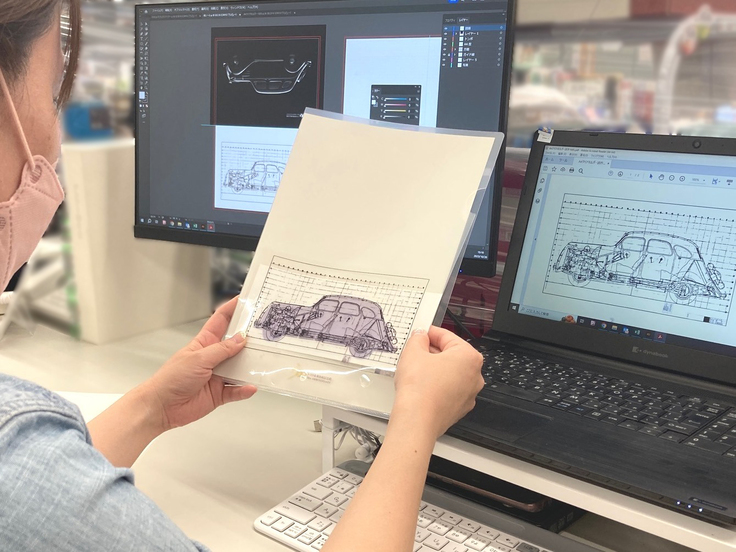デザインのモチーフはトヨタの乗用車第1号となったトヨダAA型の図面です。