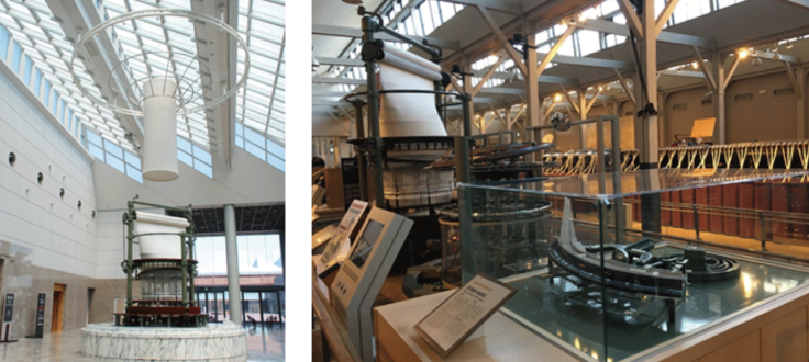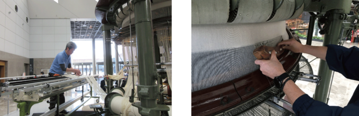 エントランスホールの環状織機もそのひとつで、今から99年前に作られた機械です。
