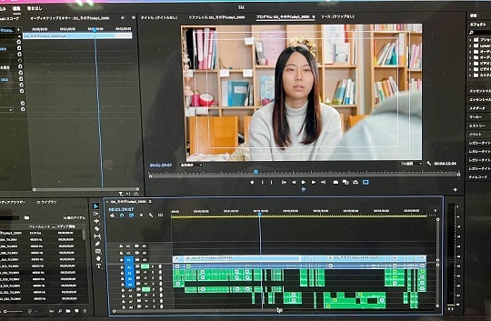 といった感じで、1シーンに何カットも撮って、それらを数秒単位で切って貼ってつなげたりします。