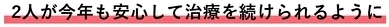 その状況の中で、私たちには2人が経済面に不安を抱えることなく治療を続けられるよう、資金面の支援を続けるほかに出来ることはありません。