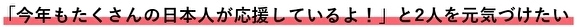 「今年もたくさんの日本人が応援してくれているよ!」と2人に報告して元気づけたいです。