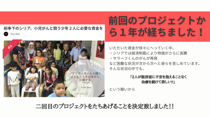 そのため、前回に引き続きクラウドファンディングによって引き続き2人への支援を続けようと決めました。